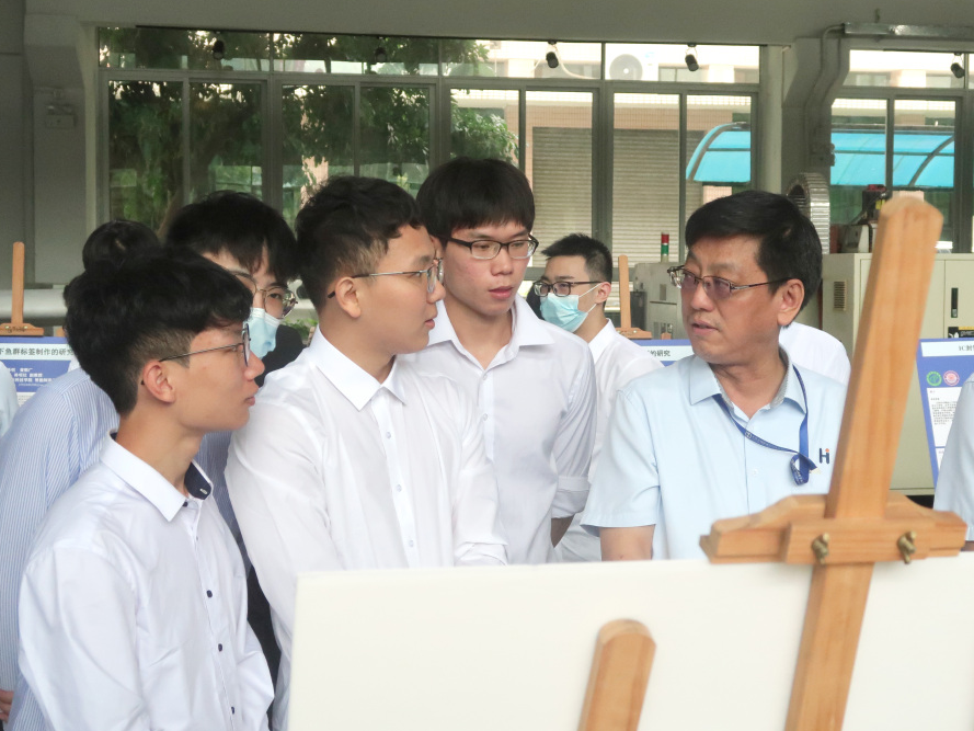 开幕式结束后,我司领导在校方的陪同下参观学生们的成果展示。不断与学生沟通交流,耐心聆听同学们的成果汇报,不断给予同学们指导性建议。同时高度赞扬此次成果展彰显了学院的办学特色与底蕴。