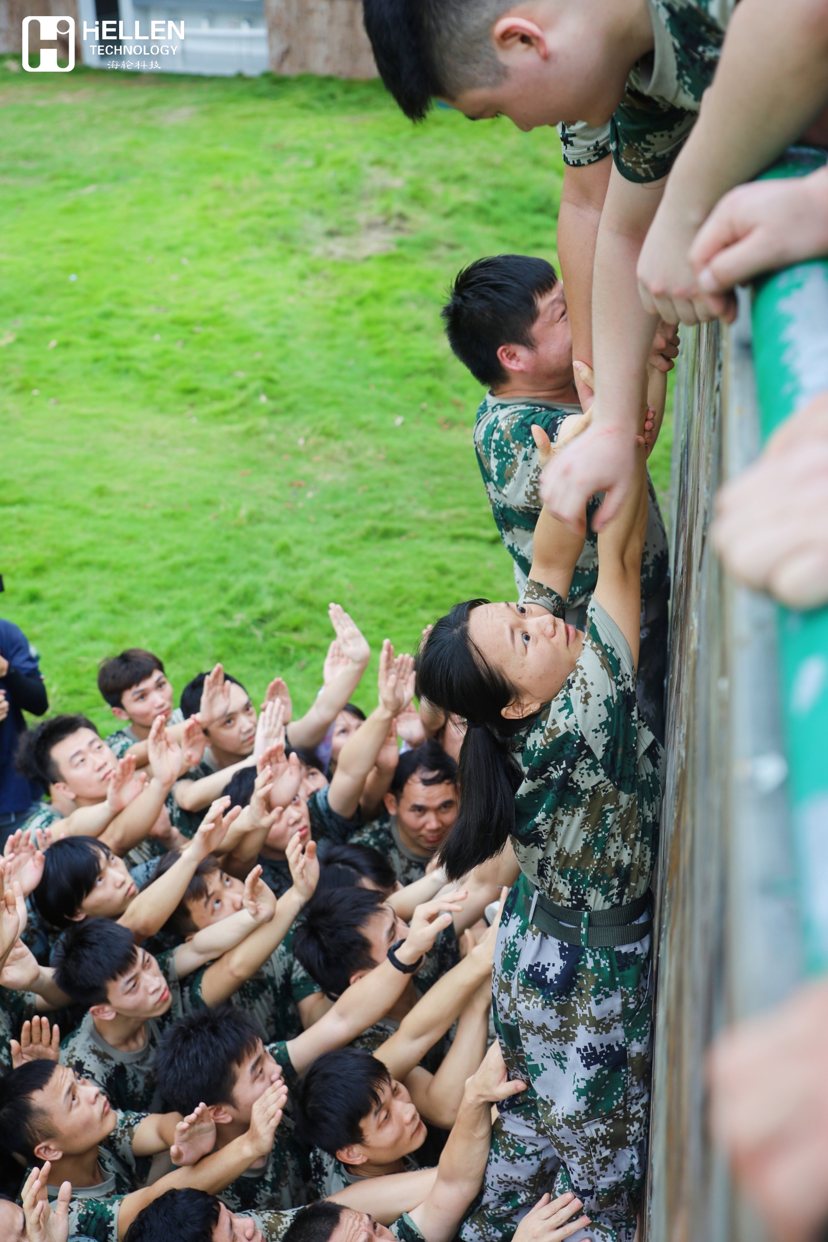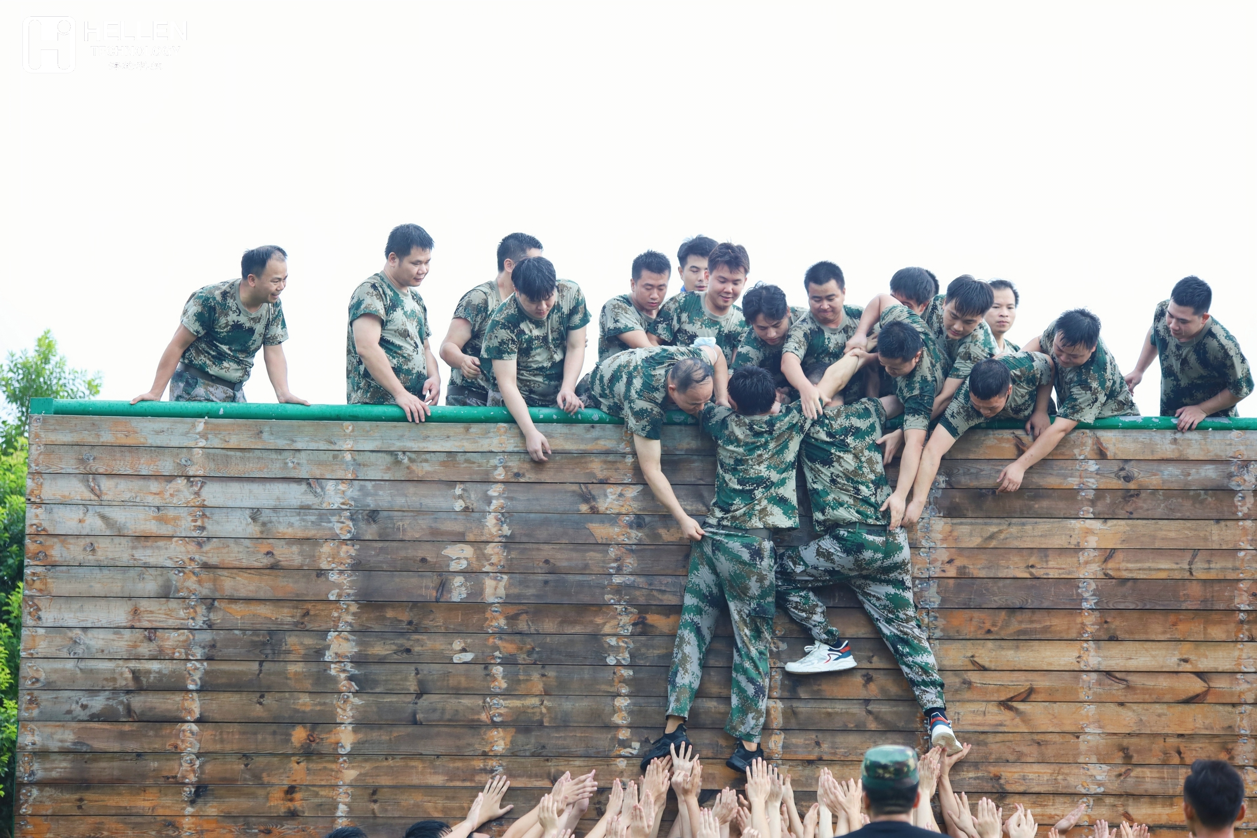 所有人一起爬上4.2m的高墙